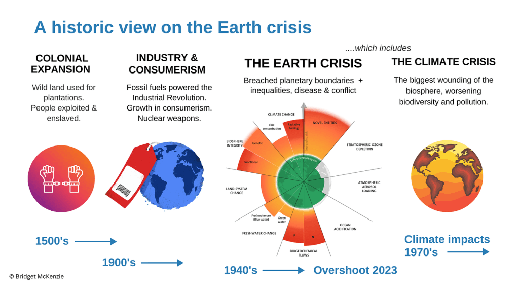 En mi caso, mi especialización en el impacto que el cambio climático y la práctica de nuevos modelos económicos de comercio sostenible como la economía circular me han llevado a ver cómo fenómenos globales, han suscitado preocupaciones no solo en términos de sus impactos medioambientales, sino también en relación con sus efectos en la estructura y funcionamiento de las instituciones. Este artículo busca explorar la relación entre el cambio climático y las instituciones de forma breve y con temas que podrían tomarnos un libro entero para analizar. Asimismo, presentaré cuál es su rol dentro del contexto de la “big history” o “gran historia” que ha inspirado la ideología detrás de estos autores laureados al presentar una perspectiva histórica que sitúa los eventos humanos dentro de la vasta cronología del universo.