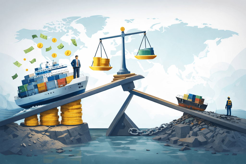 Quienes controlan el financiamiento, los seguros, las certificaciones, los puertos hub y las navieras suelen trasladar costos “río abajo” al consumidor final y a los países del sur global.